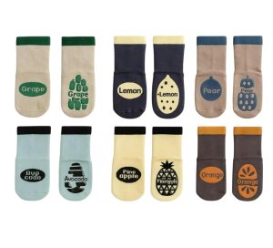 Kaydırmaz Tabanlı Bambu Bebek Çorapları | 3’lü Desenli Ananas-Portakal-Üzüm | 0-3 Yaş | Ev Için